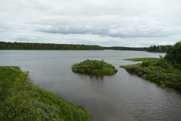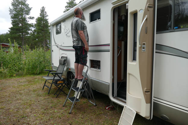 Eftersom vi inte fick kylskåpet att fungera, och saker började tina upp i frysen, hade vi bestämt oss för att campa med el, mest för att se om kylskåpet bara jäklades på gasol, eller om det var något större fel. Om vi skulle få igång det på el, skulle vi kunna utesluta att det var själva kylskåpet som det var fel på. Vi styrde direkt mot Pajala Camping, fast via Karesuando. Det är där E45 börjar eller slutar. Det var en vacker, men trasig väg.