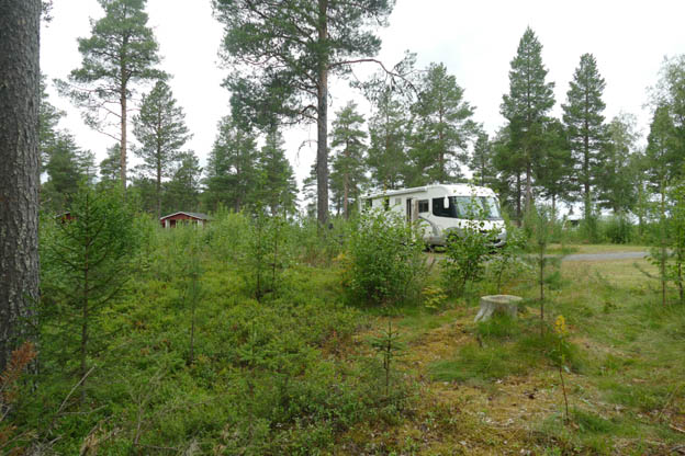 Både vi och katten Olivia tyckte att det var bra att ha träden och buskarna framför bilen. Olivia gillade att jaga tallkottar som föll ner.