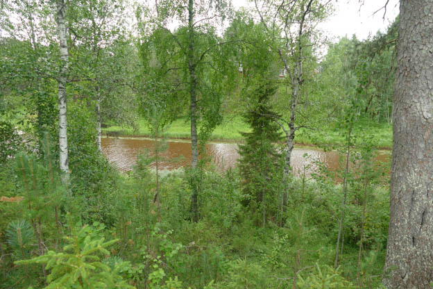 Precis nedanför vår plats rann det en liten å, som rinner ut i Torneälven precis vid campingen.
