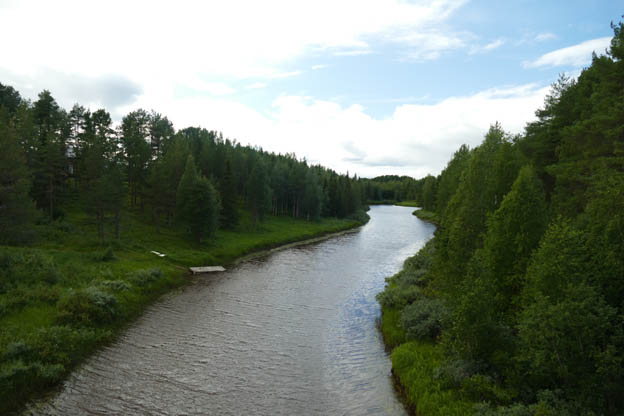 Precis vid campingen rinner ån ut i Torne älv. Torneälven är den sista helt oreglerade laxälven i hela Europa. Att den är oreglerad innebär att hela älven flyter fritt, det finns inga byggda kraftstationer längs den här älven. För att fiska behöver du självklart ha ett fiskekort. Det finns olika kort beroende på vart man befinner sig. Vi kollade aldrig vad som krävs eftersom vi skulle reparera kylskåp, men det går säkert att få veta vad som behövs om man frågar i campingens reception. De vet säkert vem man ska fråga, eller så kanske de till och med säljer fiskekort där. Det vet jag inte.