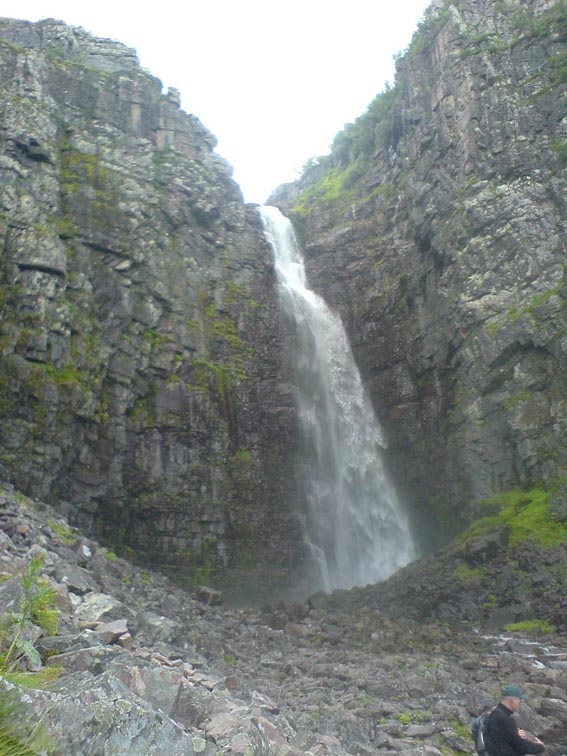Från Naturum har man två alternativ för att ta sig till fallet. Antingen fjällvandrar man längs en lite längre led, och hamnar vid ovansidan av fallet, eller så går man den kortare vägen (ca 2 km) på en förhållandevis fin stig, och kommer till fallets slut. Antingen vänder man och går tillbaka samma väg, eller så fortsätter man upp över trädgränsen på en lite sämre stig och kommer tillbaka till Naturum den vägen. Båda stigarna är bra uppmärkta.