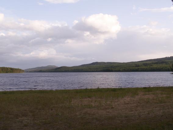 På båda sidorna om sjön ser man höga berg. En av gångerna när vi campade där hörde vi vargar yla till varandra i bergen på varsin sida om sjön. Det var maffigt.