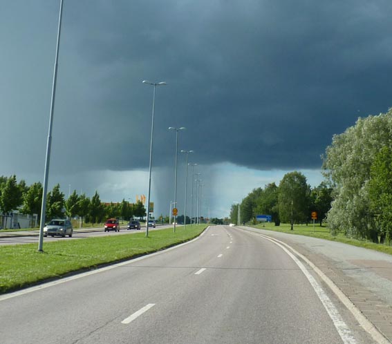 I Fagersta såg vi det här regnmolnet komma mot oss. Det passerade precis bredvid bilen.