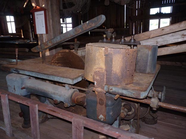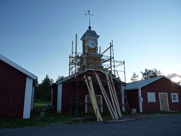 Precis bredvid campingen finns det flera k-märkta byggnader från industrin som fanns där, bland annat sågverk, snickeri och kvarn. Klockan på det här huset användes för att hålla reda på arbetstiderna.