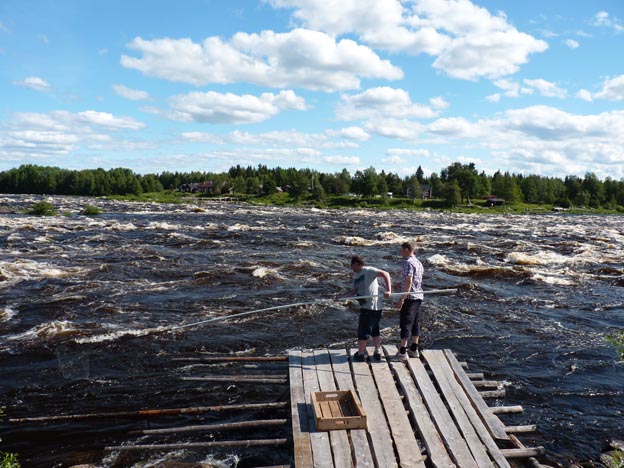 Vi stannade kvar i Kukkolaforsen och provade att fiska sik på traditionellt sätt, med en sex meter lång håv som man förde strax ovanför botten. Det såg väldigt enkelt ut, men det var det inte. Det var väldigt tungt att hålla i håven och följa med forsen, samtidigt som man skulle undvika stenarna på botten.