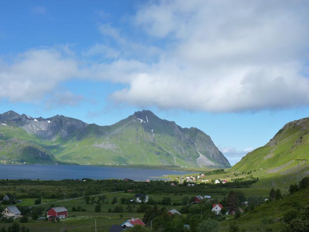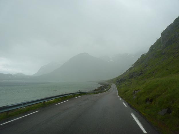 Idag lämnade vi Lofoten. Dagens resa var dryg, lagom när man har fått upp farten kommer man till en by där det är 40 eller 50 km/h som gäller, kändes det som. Vi skulle stanna och köpa mjölk, men eftersom det var söndag var de flesta affärerna stängda. I Norge är det bara de större affärerna som har öppet på söndagar, och det finns inte så många sådana på Lofoten.