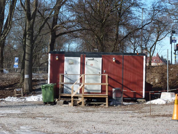 Här har vi servicehuset. Servicebarack, är väl kanske ett mer passande ord. Där inne fanns ett par toaletter och duschar. Det var ganska rent, men inte modernt på något vis.