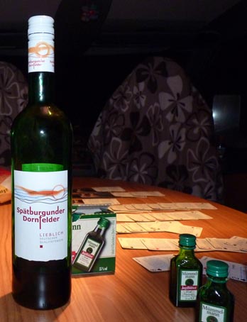 Lelle köpte en flaska vin för ca 18 kr i mataffären, bara för att prova. Det var visst inte så gott. Jag höll mig till mina öl i stället.