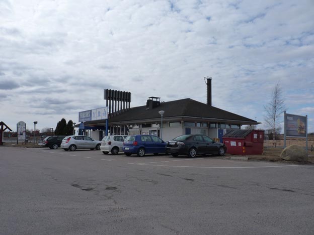 I Fjälkinge, mellan Kristianstad och Sölvesborg, stannade vi och åt en väglunch på Frasses. De har en bra parkering där, man får gott och väl plats med husbilen, dessutom ligger det precis bredvid motorvägen och maten är ok.