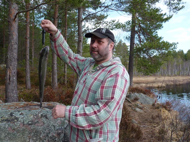 Resten av helgen var vädret bättre. Vi fiskade på fredagen och lördagen, och vi fick faktiskt en hel del fisk. Det brukar ju vara lite dåligt med isättning av fisk i Krampensjöarna, men det kanske blir bättre i år.