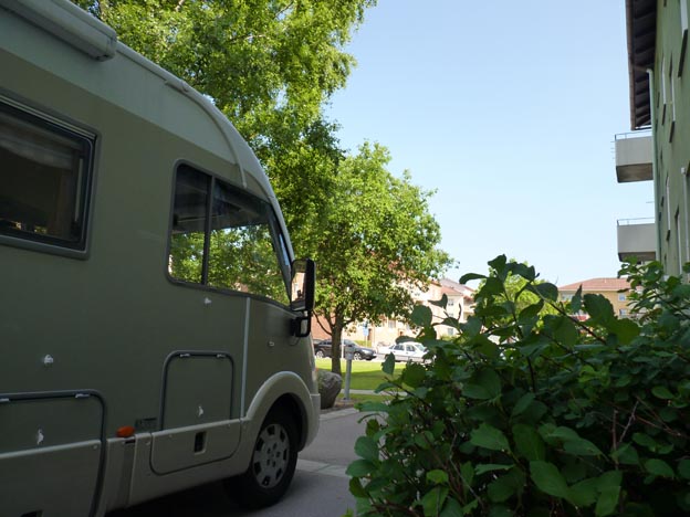 Då far vi väl vidare då, tänkte vi, men så blev det inte. Den trevliga tjejen erbjöd oss en plats utan el, på en del av tältcampingen. Om det gick bra för oss. Det är klart att det gick bra. Vi behöver inte el hela tiden, och tältavdelningar kan vara väldigt mysiga, så vi slog till. Den här tältavdelningen låg precis bredvid en stor parkering, men det gjorde inte så mycket, för det fanns inga bilar där.