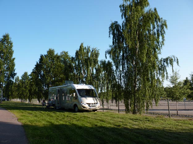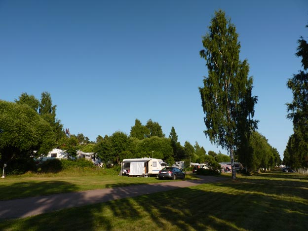 Vi började med en kort tur, vi ville inte slå läger för sent på dagen eftersom vi ville njuta av den kommande semestern och ta vara på värmen. Vi tog sikte på Falun, en lagom kort etapp. Väl där, på Lugnets camping och stugby, möttes vi av en mycket trevlig tjej i receptionen. Hon bad så mycket om ursäkt, campingen var full. Det var ju nämligen SM i boule där dagen efter, upplyste hon oss om…