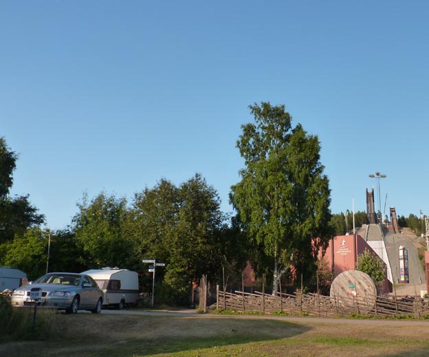 Precis bredvid campingen ligger Lugnets skidanläggning, med två stora hoppbackar.