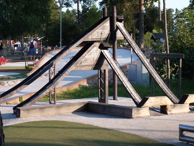 På campingen fanns en mycket annorlunda minigolfbana, de som har byggt den har hämtat inspiration från både skidbackarna och den lokala gruvan.