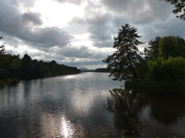 Efter regn så kommer sol. Ljungan flyter fram lite sakta förbi campingen på kvällen.
