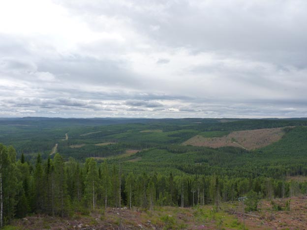 Nu besökte vi den andra geografiska mittpunkten, berget Flataklacken, som ligger i närheten av Torpshammar längs med E14. Mittpunkten togs fram av Stockholms högskola 1947. De gjorde en styv karta av Sverige, som de sedan flyttade en nål under tills det vägde jämnt.