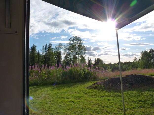 Campingen för natten blev Lufta Camping, längs med E4 mellan Umeå och Skellefteå. En SCR-camping som enligt uppgift har 60 platser, och inga säsongare som ockuperar platserna för oss campare. Vi stannade där två nätter, en utan el, 170 kr/dygn, och en med el, 220 kr/dygn. Duscharna var gratis, men det var väldigt dåligt vattentryck i dem. Städningen funkade bra i alla fall.