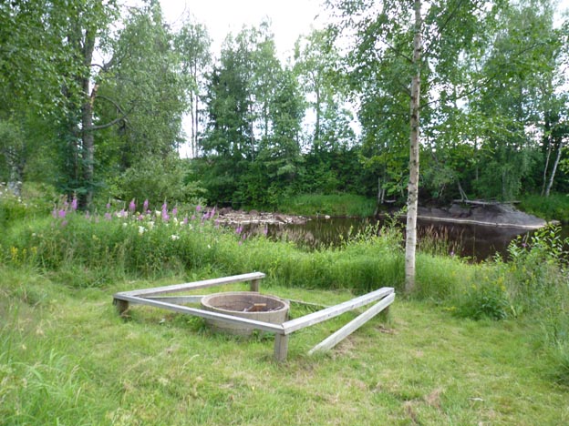 Nere vid ån som flöt förbi campingen fanns en eldkoja.