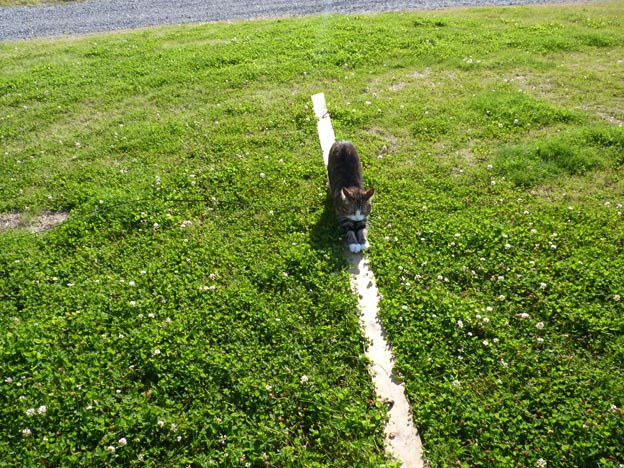 En bräda som markerade gränserna mellan olika platser. Den fungerade även som klösbräda åt katten.
