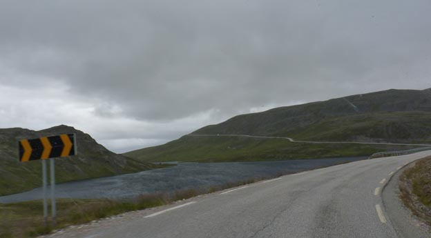 Vägen slingrade sig fram längs med klipporna när den inte gick över kalfjället.