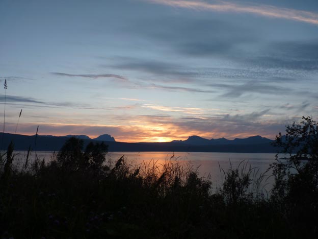 När vi kom till Narvik var det slut på midnattssol, men det blev inte mörkt heller. Det här kortet är taget kl 23.25.
