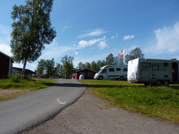 Ballangen Camping hade markerade platser, men man behövde inte tala om vilken plats man tog. Det var bara att åka in, leta reda på en lämplig plats, och parkera. Platserna var varierande i storlek. Vissa var väldigt stora, andra var lite mindre. Den trevliga receptionisten föreslog att vi skulle åka ner och titta om någon av platserna nära fjorden var ledig, för där var det finast. Där var det i och för sig fullt, men vi hittade en annan bra plats med lite fjordutsikt.