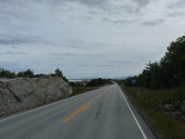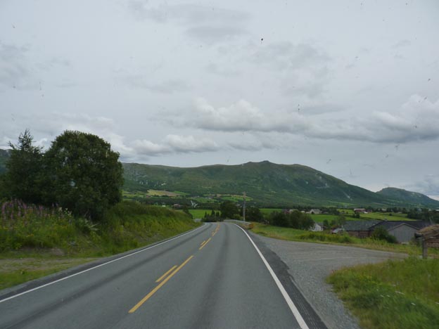 Vägen är faktiskt bra. Till skillnad från vägen mellan Bud och Vevang, som var väldigt smal. Det finns till och med streck i mitten på vägen.