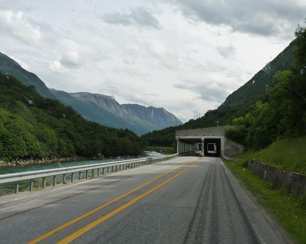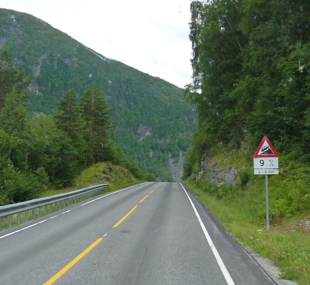 När man kör i väst- östlig riktning i Norge råkar man ofta ut för dessa skyltar. Kan de inte bygga en tunnel så går vägen över berg och fjäll.