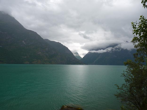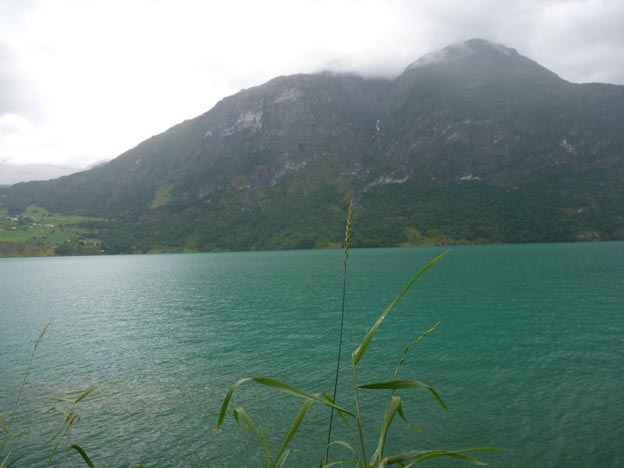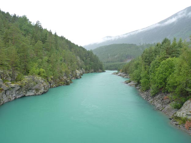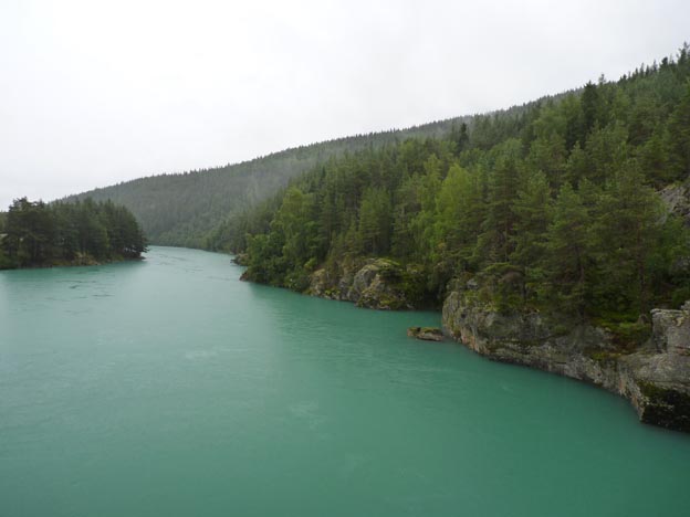 Före Lom började vattnet bli alldeles grönt. Det småregnade lite, det gjorde att färgerna kom fram ordentligt. Vackert!