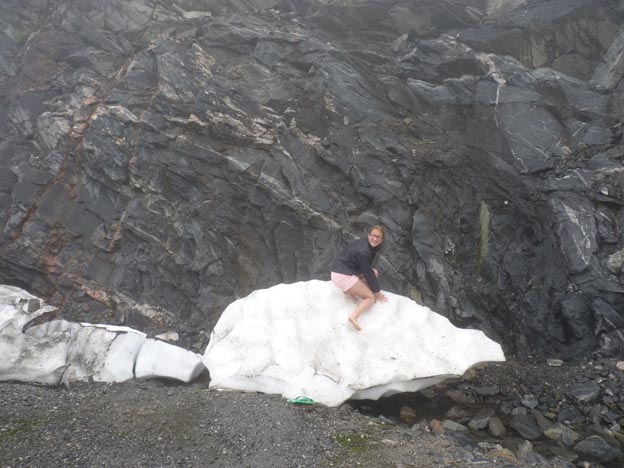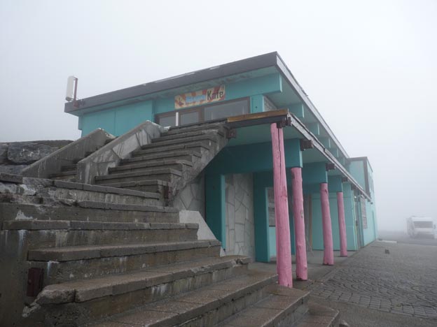 Uppe på fjället kom vi fram till ett sommarskidcenter, som var stängt på grund av för lite snö.