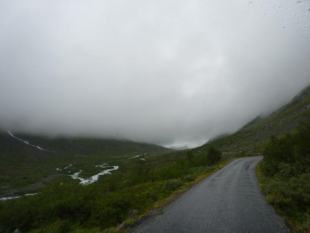 Precis när jag trodde att det inte kunde bli värre, kom dimman. Där var vi, på ett fjäll, på en smal grusväg där vi hade mellan en och två decimeter till godo på bägge sidor mellan hjulen och vägen. Lägg till kurvor och raviner, och ta bort vägräcken. När dimman kom var det inte kul. Det fanns ingenstans att stanna just då heller.