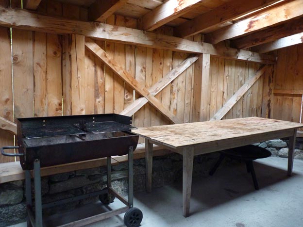 Servicehus och reception. Det var inte stort, men det var rent och fräscht. Duschen kostar 10 kr, det fanns tre damduschar, fastän huset var litet.
