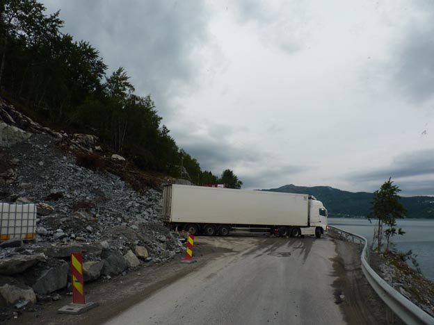 Väg 60 mellan Olden och Byrkjelo var även den smal. Med tanke på trafikomledningsskylten kanske de håller på att bygga en bredare väg. Vi hittade ingen omledning, vi följde efter de andra och fortsatte längs vägen.