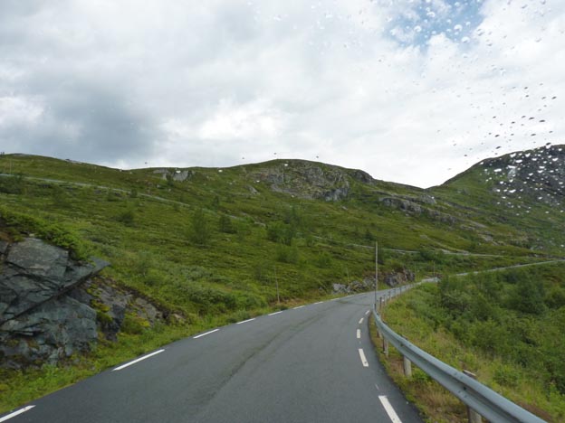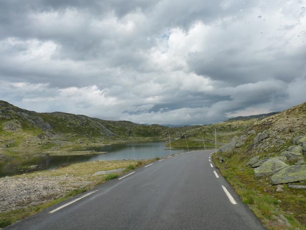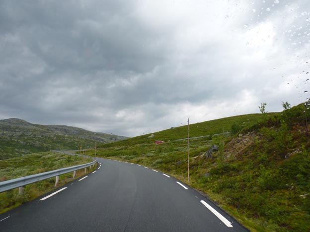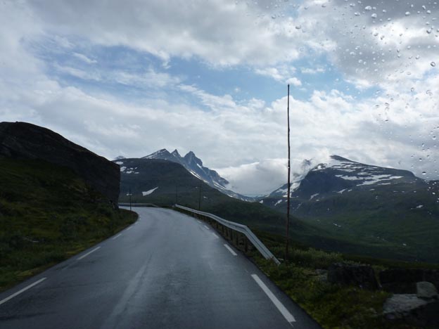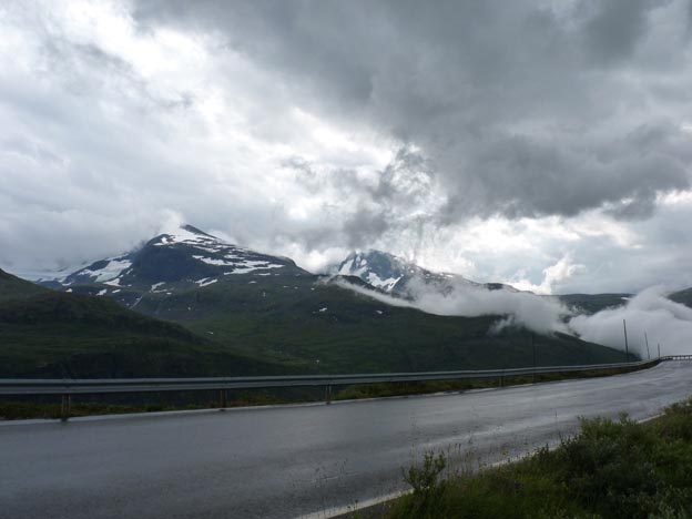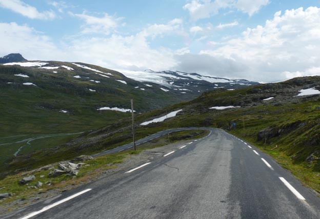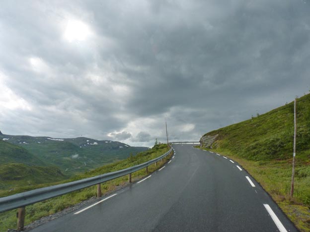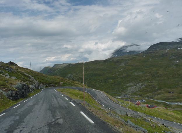 På väg ner från fjället mot Lom blir det kurvigt igen, men inte alls lika snäva kurvor som på andra sidan fjället. Däremot saknas det vägräcke.