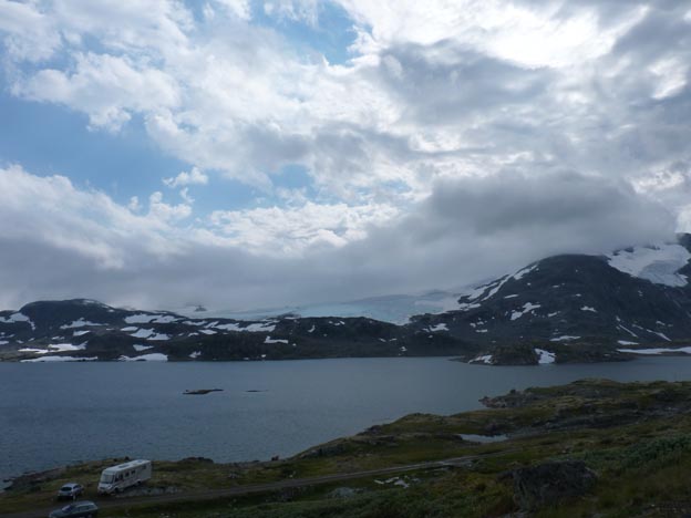 Det var mycket vackert uppe på Sognefjället. Det var omväxlande fjällnatur, höga berg, små och lite större sjöar, raviner. När man väl har klarat kurvorna vid Skjolden är det utan tvekan värt att köra där, det fungerar mycket bra med husbil.