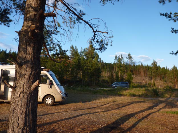 Mellan Folldal och Alvdal hittade vi en fricamping, där det redan stod en norsk husbil. Strax efter oss kom det några tyskar också.