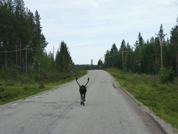 Vi åkte ner från Flatruet till Ljungdalen, och därefter mot Åsarna. Vi fick sällskap av en ren.