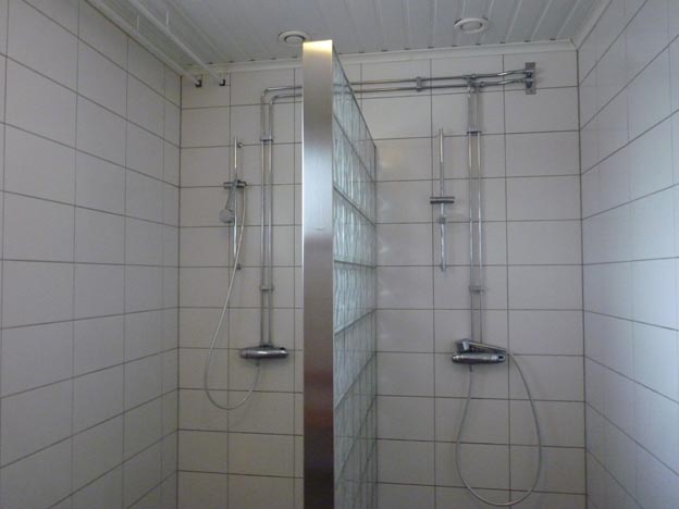 Duscharna var fräscha, men jag tycker inte om när det inte finns något draperi. Jag vill gärna duscha ifred. Duschen var gratis.