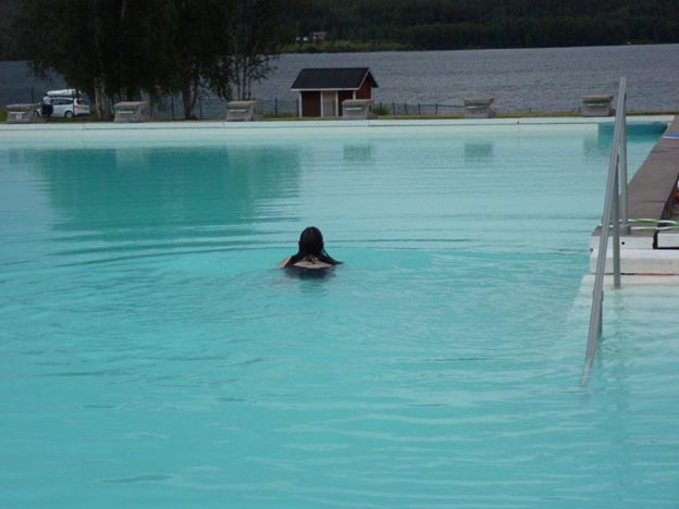Miranda ville bada i poolen, så jag följde med. Jag föredrar att bada i sjön, men jag gjorde ett undantag. Det fick bli ett kvällsdopp i poolen innan regnet kom.