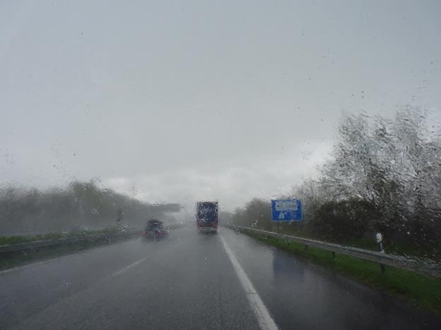 Före Hamburg började det spöregna, hela himlen öppnade sig, och sikten försämrades ordentligt.