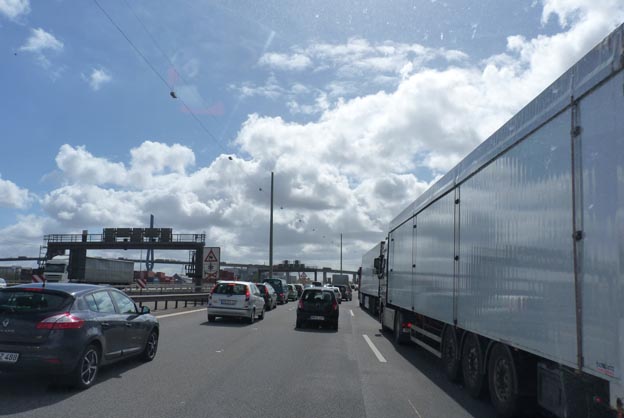Runt Hamburg var det kö, eller ”Stau”, som det står på stora neonskyltar. Det var det förra året också när vi åkte runt Hamburg. Man får tydligen räkna med att det tar tid att köra runt de större städerna.