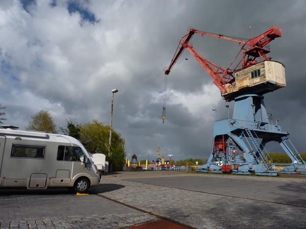 Den lutande platsen i Elsfleths hamn. Vi hittade den som var rakast. Det kom bara en husbil till, så det var väldigt lugnt.