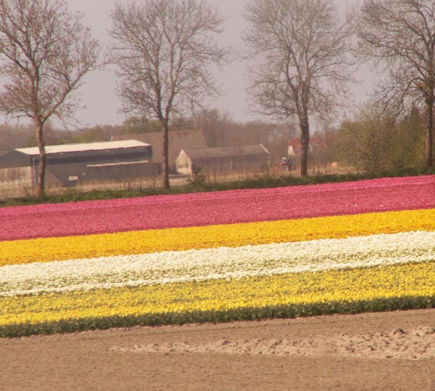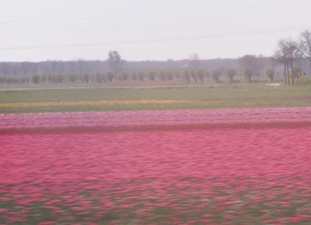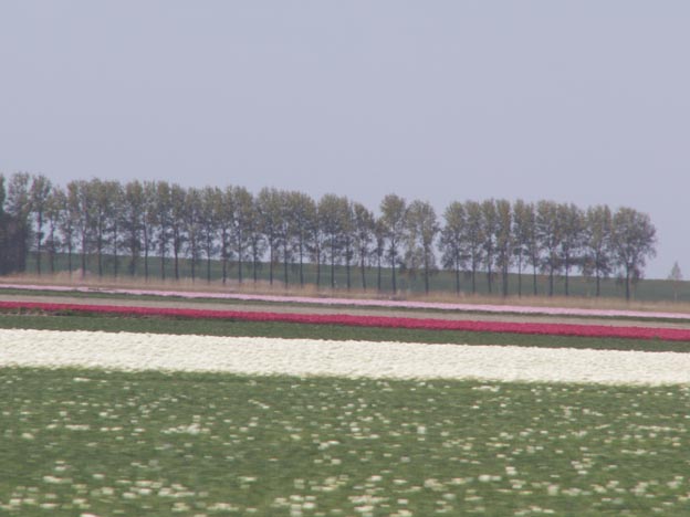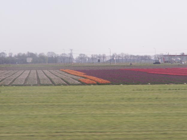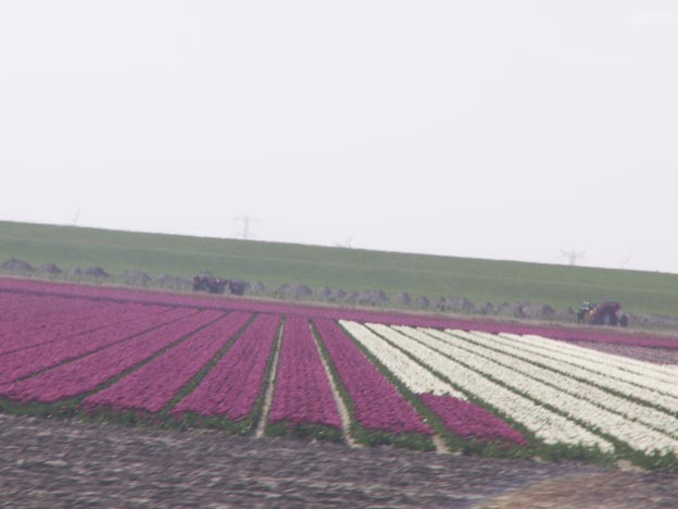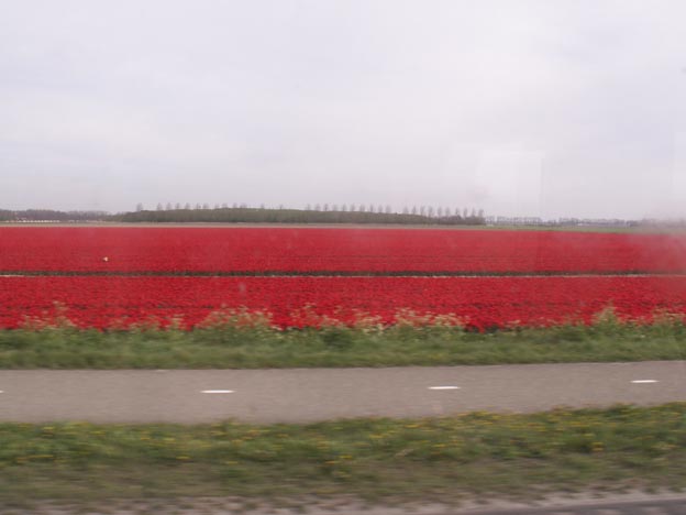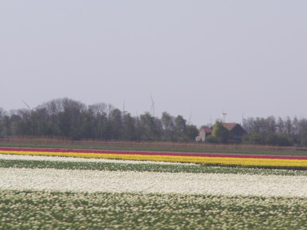 Strax söder om Lemmer såg vi de första tulpanfälten. Om vi hade kollat upp fakta innan vi åkte så skulle vi ha vetat att de största tulpanodlingarna finns i regionen Flevoland, öster om Amsterdam. Vi åkte alltså i norra delarna av odlingslandskapet. Det var fint att se alla tulpaner i olika färger. De här såg vi från Autobahn. Vi valde åtminstone rätt tid på året, det ska finnas mest tulpaner i mitten av april.