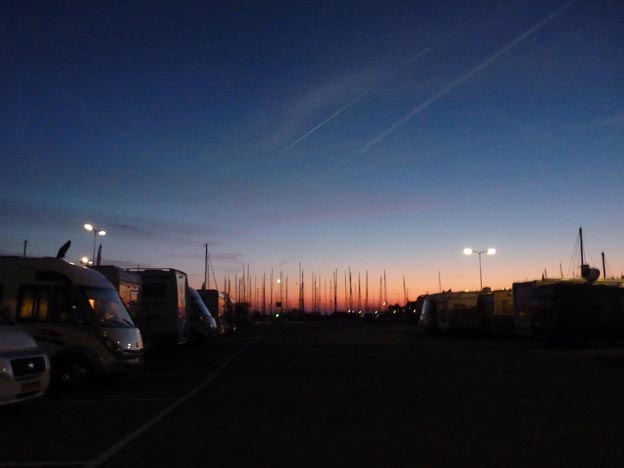 Det var fint i hamnen i Urk, det enda som störde var den sena biltrafiken genom parkeringen och precis förbi ställplatsen.