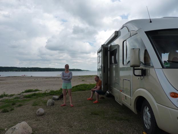 Den här campingen var något dyrare än den förra. Här betalade vi först 75 Dkr/person, sedan 35 Dkr för ström, 41 Dkr för platsen, 40 Dkr för havsutsikten, och en avgift på 12.79 Dkr, totalt 353.79 Dkr.