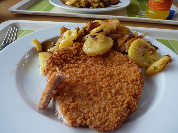 Vi stannade på en Autohof och åt lunch på Serways, en stor matkedja längs autobahn. Det var gott, men inte särskilt billigt. 36.99 € för oss tre.