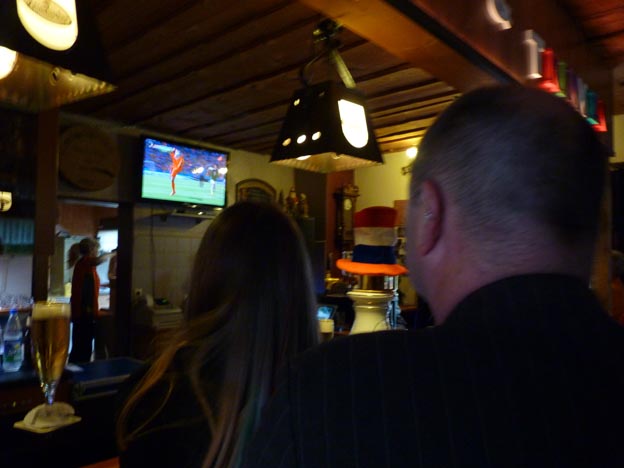 På kvällen var vi och såg på fotbollen, först inne i restaurangen, sedan i öltältet. Campingvärdinnan dansade av glädje när Holland vann. Det var riktigt kul.