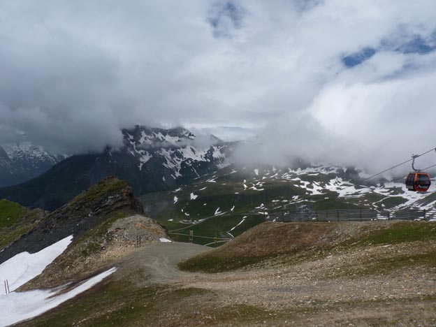 På grund av de tunga molnen såg vi inte så mycket när vi åkte upp. Man kunde ana bergstopparna när molnen lättade lite, men för det mesta såg det ut så här.