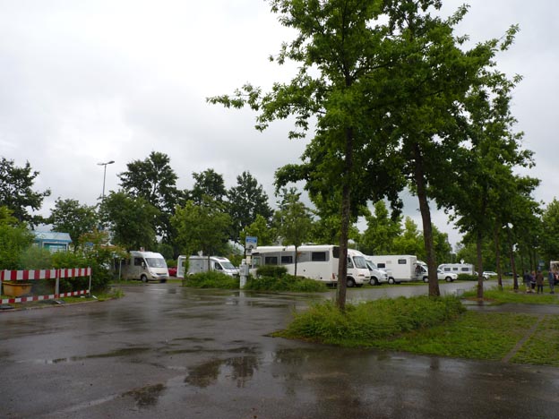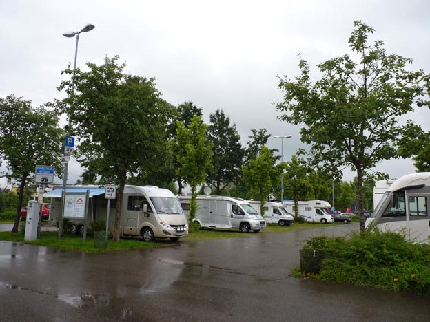 Det var tur, för ställplatsen var mycket tråkig. Det var en del av en parkeringsplats nära centrum. Platserna var skapligt stora. Det var inte svårt att hitta dit, det var skyltar mot P1, som det stod i BordAtlas. Det fanns även husbilar på skyltarna.