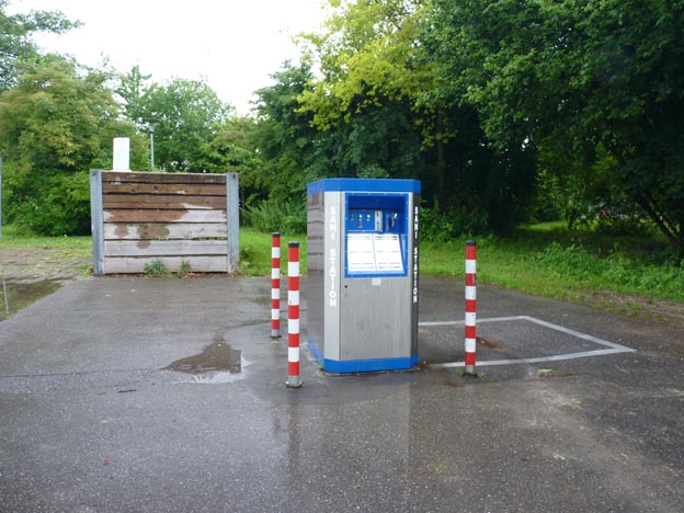 Det fanns soptömning och toatömning. Färskvatten fanns också. För att tömma toa stoppade man 50 Cent i en automat. Det gjorde så att en lucka öppnades, där man tömde toan. Vatten betalade man i samma automat. Det fanns många olika knappar att trycka på. Om man kom överens med grannarna, som vi gjorde, kunde man tömma toan ihop men bara betala för en.